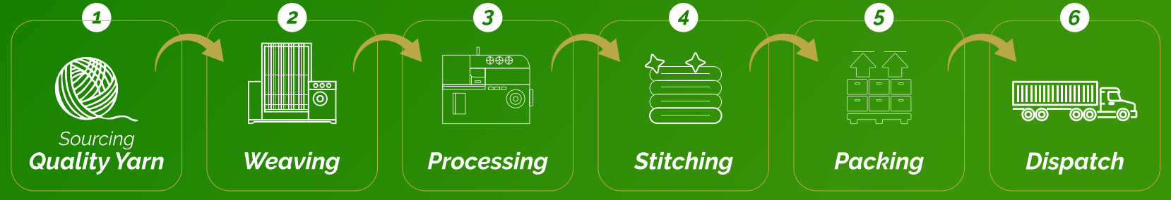 - In-house integrated facilities including weaving, processing finishing & packing all under one roof.